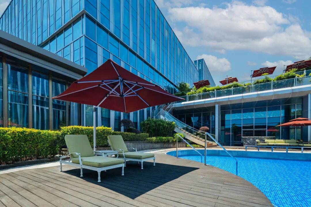 酒店占地3万余方,共有280余间客房,恢弘雅致的主楼建造在林木掩映间,幽径迤逦,处处彰显东方神韵。室内设计端庄沉稳,以简洁、幽雅、静谧之感融为一体,与艺尚小镇四时有景的独有资源自然浑然天成,步入其中犹如置身世外桃源。杭城独有户外景观泳池完全置身于充足H2O怀抱中,您可以惬意地倚靠在亲水平台的靠椅边,与恬静的心境相契合,尽享都市里的一帖宁静剂,领宾客度过极尽惬意的悠闲旅程。