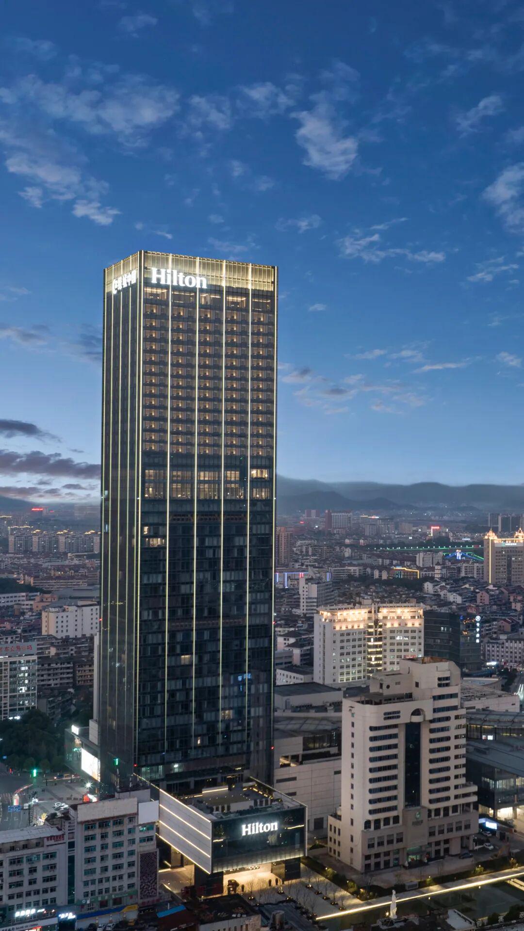 诸暨希尔顿酒店地处城区繁华地段,毗邻诸暨行政中心,俯瞰波光粼粼的浦阳江和风景如画的陶朱山,是城市的标志性建筑。距美丽的西施故里景区仅5分钟车程,距诸暨火车站16分钟车程,距义乌机场50分钟车程,距杭州萧山国际机场60分钟车程。酒店周边配套娱乐及餐饮为一体的大型购物中心和仿古商业街,提供便捷的环境。酒店拥有363间宽敞的高空观景客房和套房,设计灵动,配套齐全,豪华的甜梦之床体验,让您享有安心的睡眠。